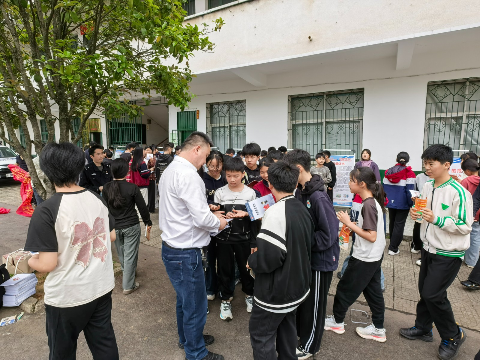 此外,镇司法所工作人员结合《中华人民共和国未成年人保护法》《中华人民共和国预防未成年人犯罪法》等核心法律法规,围绕“校园欺凌防范”主题,从法律定义、行为危害、预防措施、责任追究等方面进行系统解读,悄悄在同学们心中种下“学法、懂法、守法、用法”的种子。宣讲过后,同学们走出教室,有序参观禁毒宣传展板,县禁毒大队的工作人员全程陪伴,用生动的讲解、直观的图片,把禁毒知识讲深讲透,让安全理念真正入脑入心。
